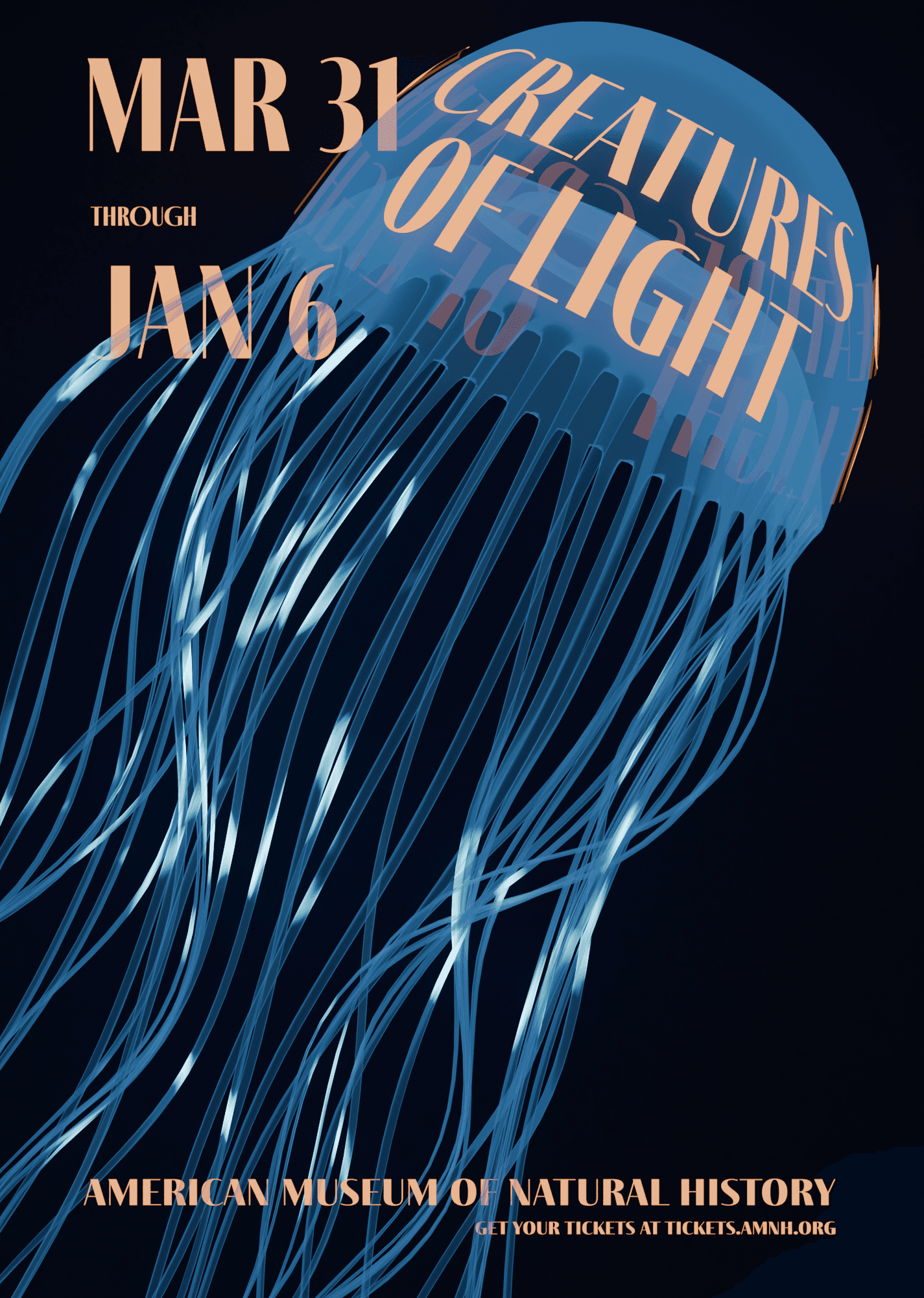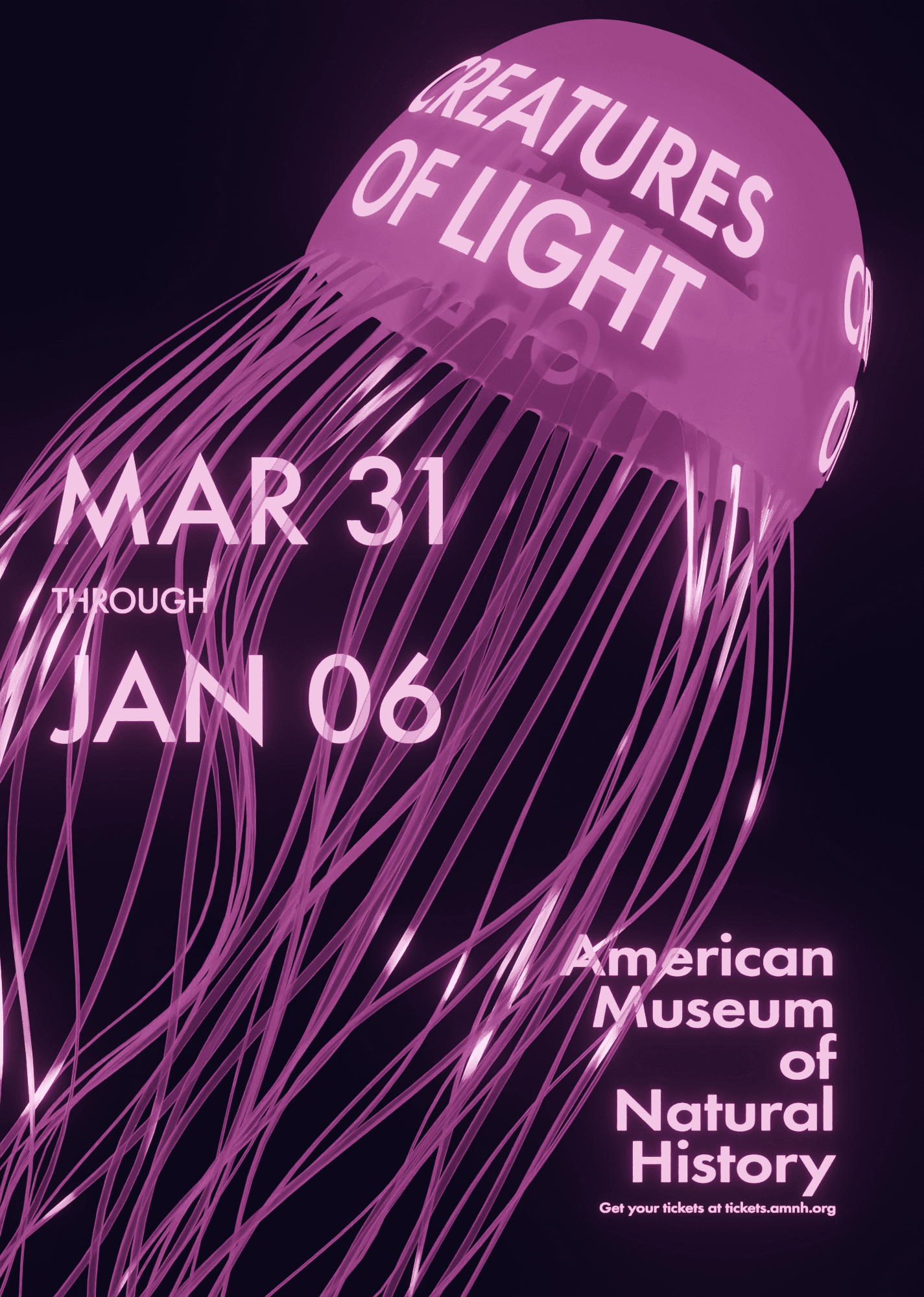 As an exercise in designing graphics, I set out to redesign a poster series for the American Museum of Natural History's exhibit Creatures of Light. The goal was to create a series of compelling moving posters that effectively integrated typography.