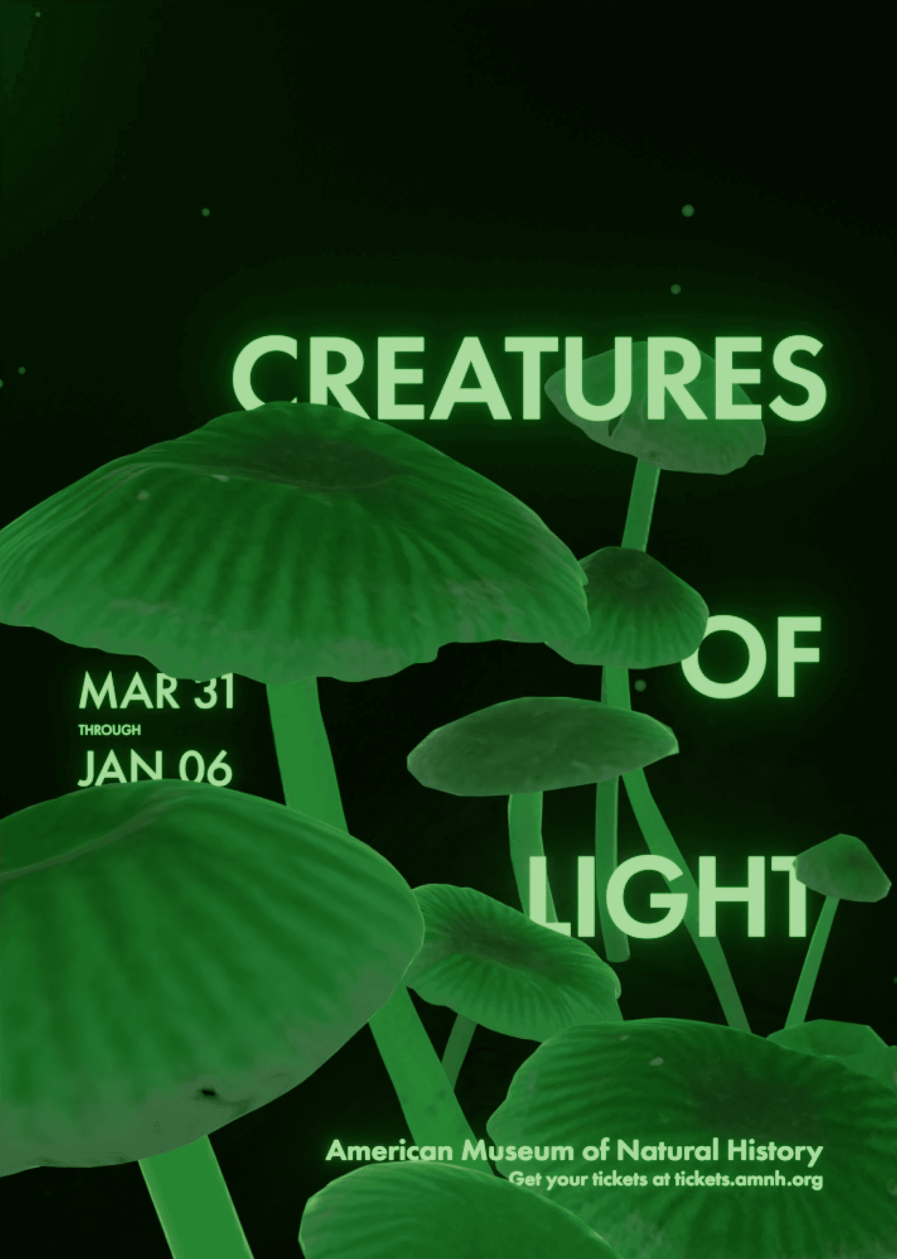 This project was inspired by seeing some older promotional materials from American Museum of Natural History. The concept of posters about bioluminescence was begging for some updated visuals that could really draw in viewers and get people excited about the visit.