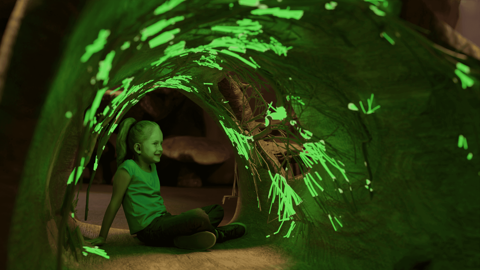 What’s a better way to explore how awesome mushrooms are than making them super sized? The first room of this exhibit features a play driven forest environment. The room is anchored by a large central tree that allows kids to interact directly with fungi’s main role in the ecosystem: feeding and recycling trees!