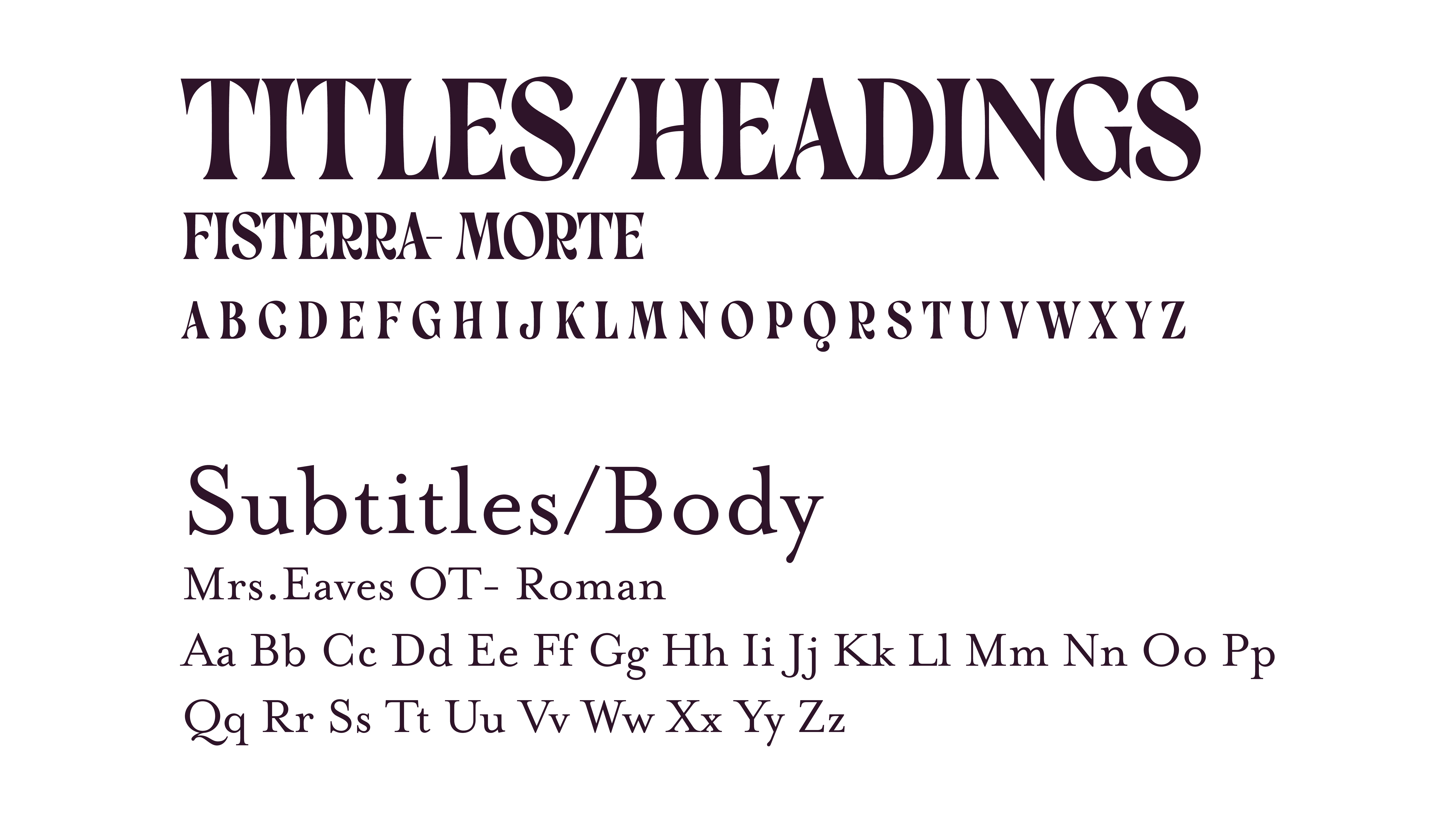 Mrs.Eaves compliments the strong message that Fisterra brings while remaining subdued enough to maintain functionality as a body font.